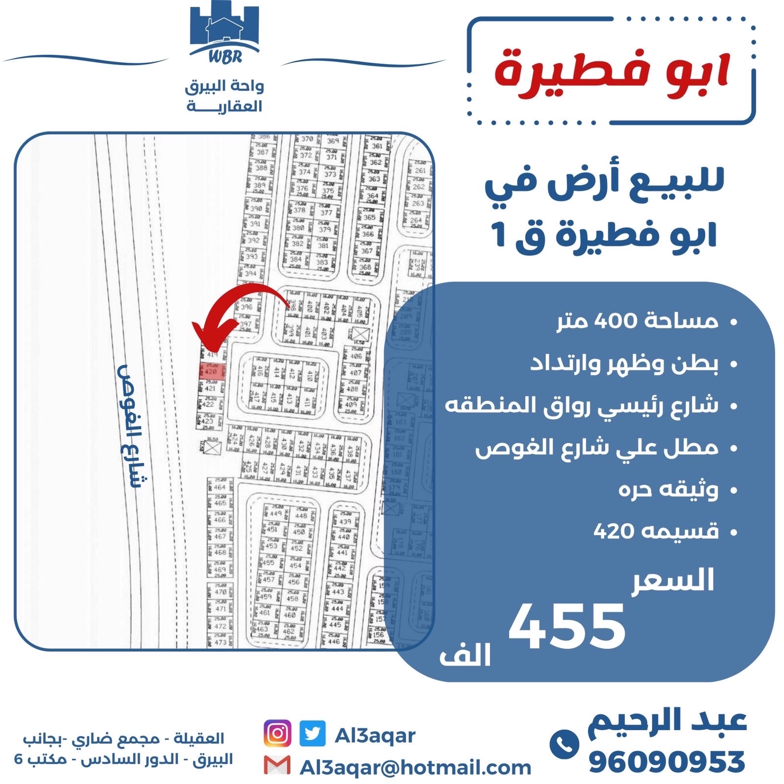 للبيـع أرض فى ابوفطيرة قطعة 1 Share ملخص للبيـع أرض فى ابو فطيرة قطعة 1 ، مساحتها 400 متر مربع ، تقع على بطن وظهر وارتداد ، على شارع رئيسي رواق المنطقة ، مطل على شارع الغوص وثيقه حره ، السعر 455 ألف د.ك ، قسيمه رقم 420 التفاصيل حالة: للبيع Page Views الأماكن القريبة من جوجل خصائص ذات صلة للبيع تجربة عنصر للبيع abdulrahman منذ أسبوعين للبيع د.ك111111 شقة تجربة عقار جديد خليل بوست أسرة: 666666 الحمامات: 666666 admin منذ 3 أسابيع Close