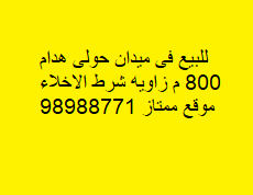 للبيع فى ميدان حولى ، هدام ، مساحته 800 متر مربع ، يقع على زاويه ، شرط الاخلاء ، موقع ممتاز 98988771